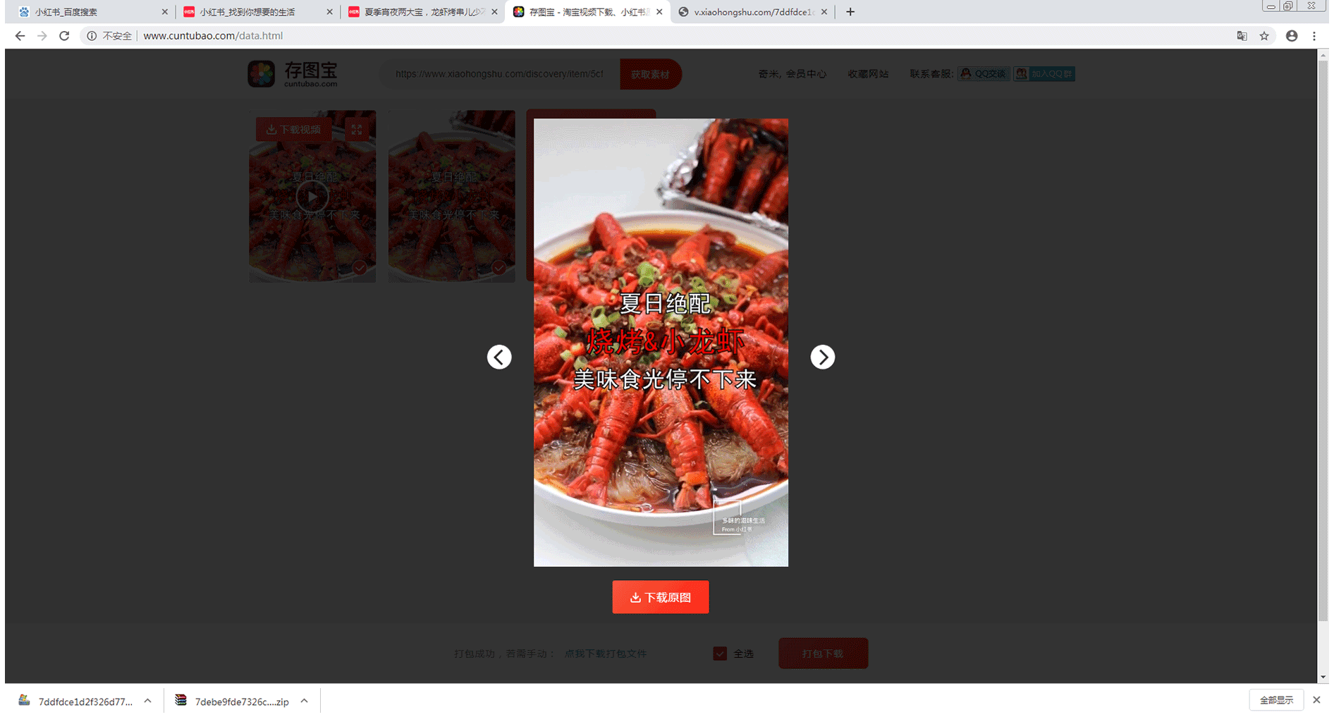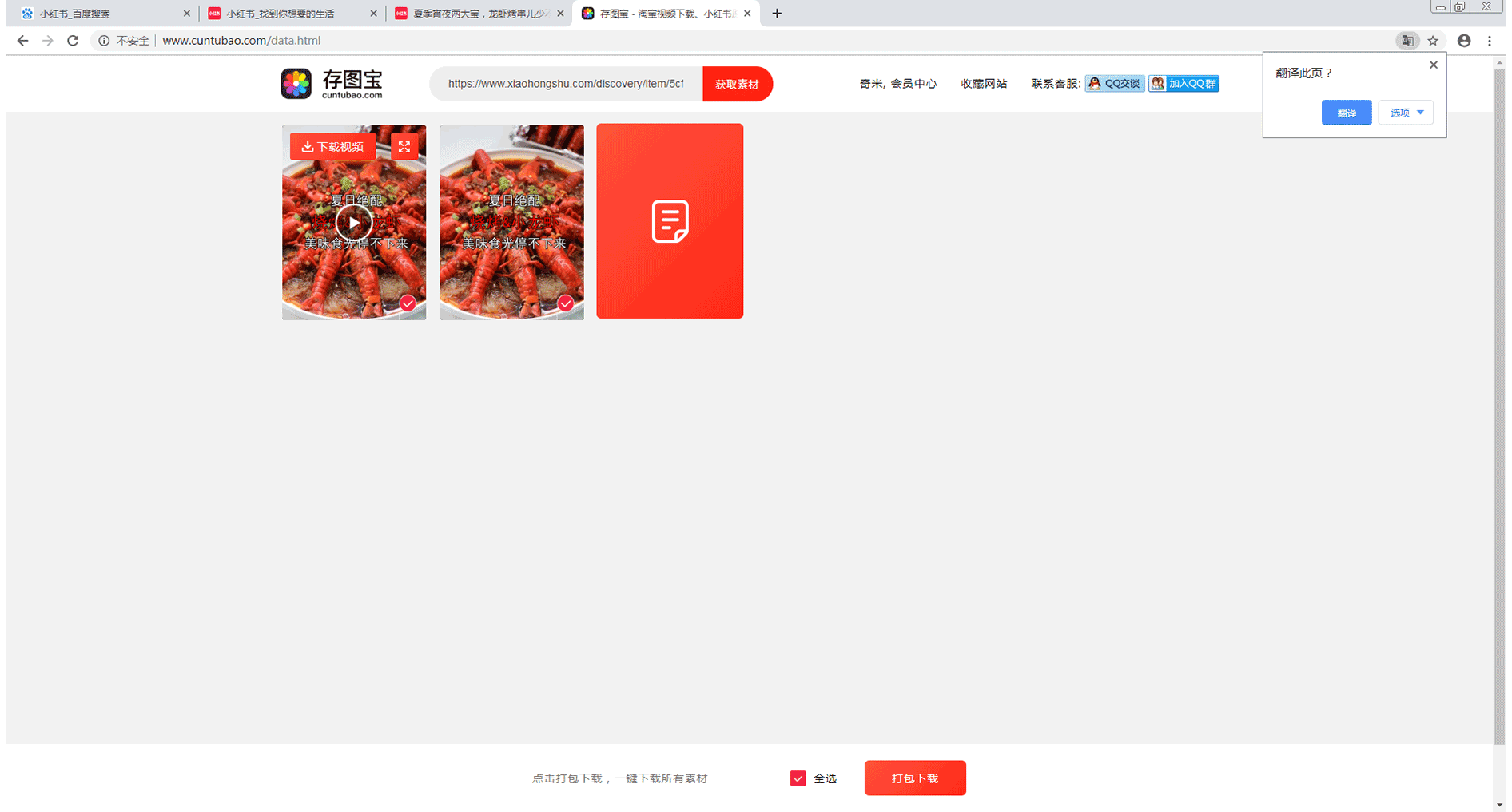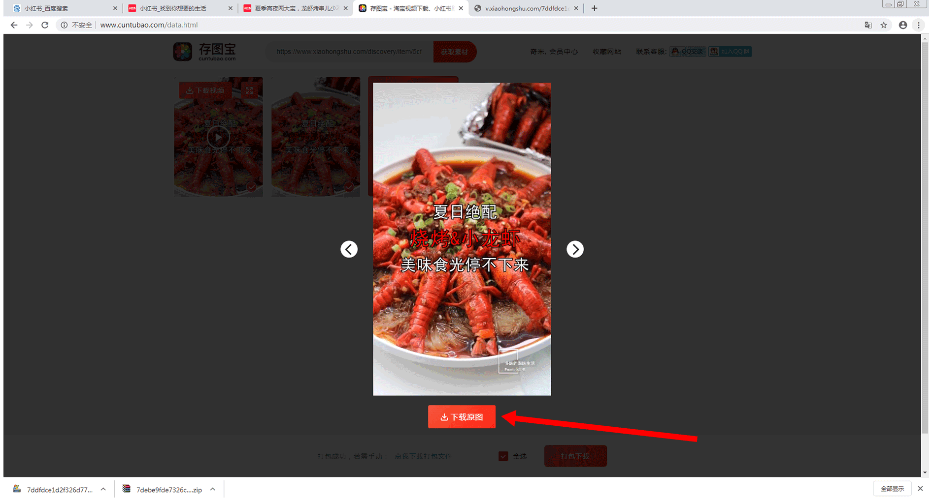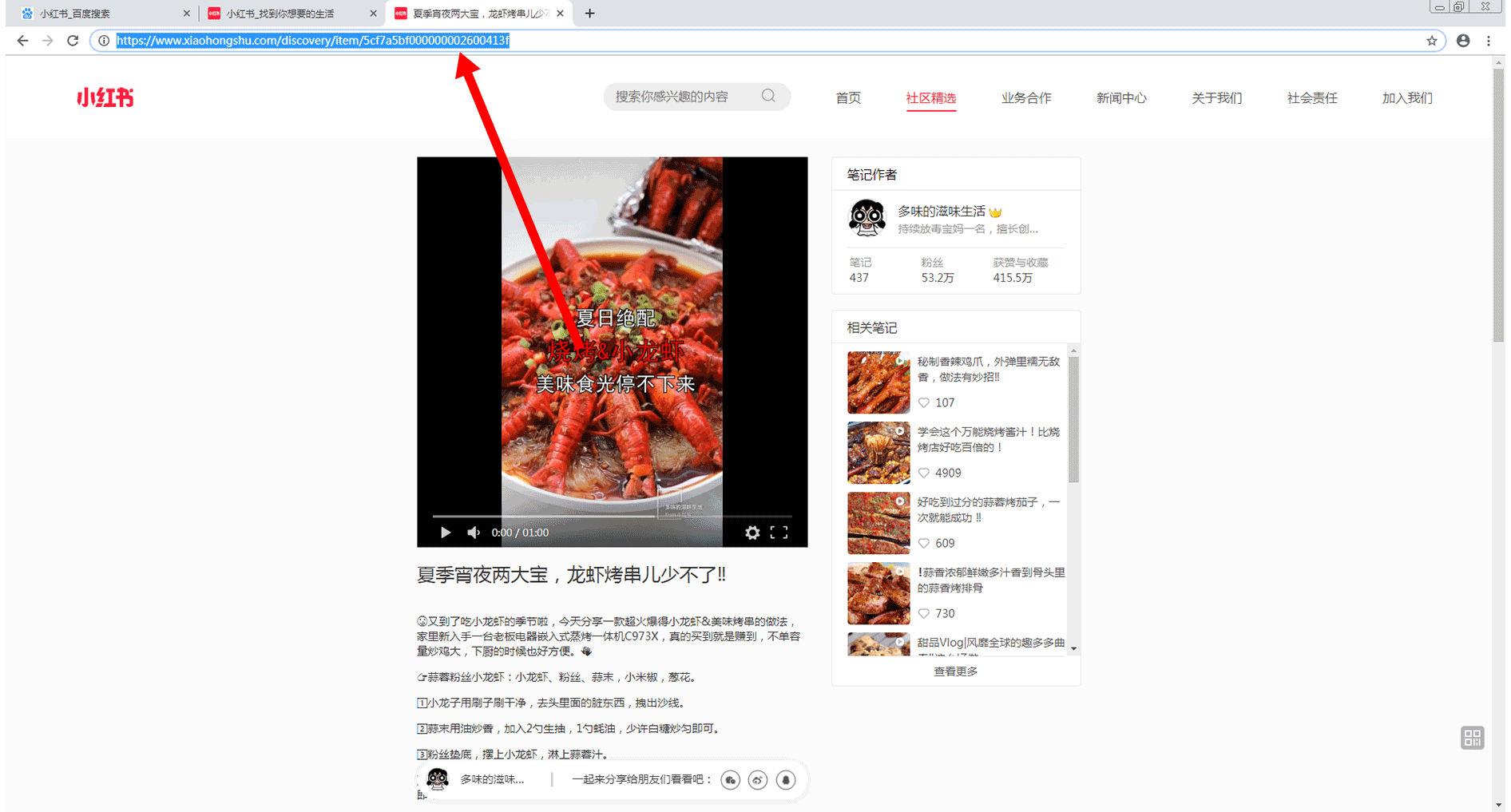 首先,通过浏览器进入到小红书,进入到你想要下载的小红书素材页面,如下图所示: