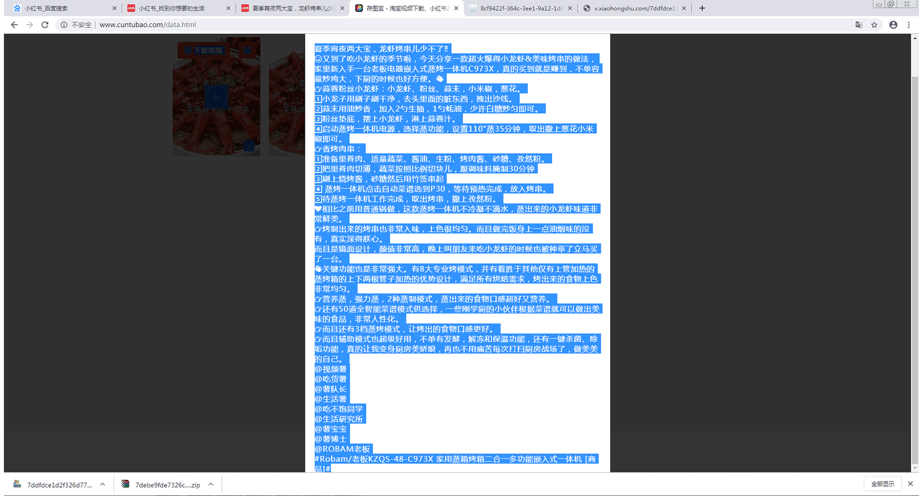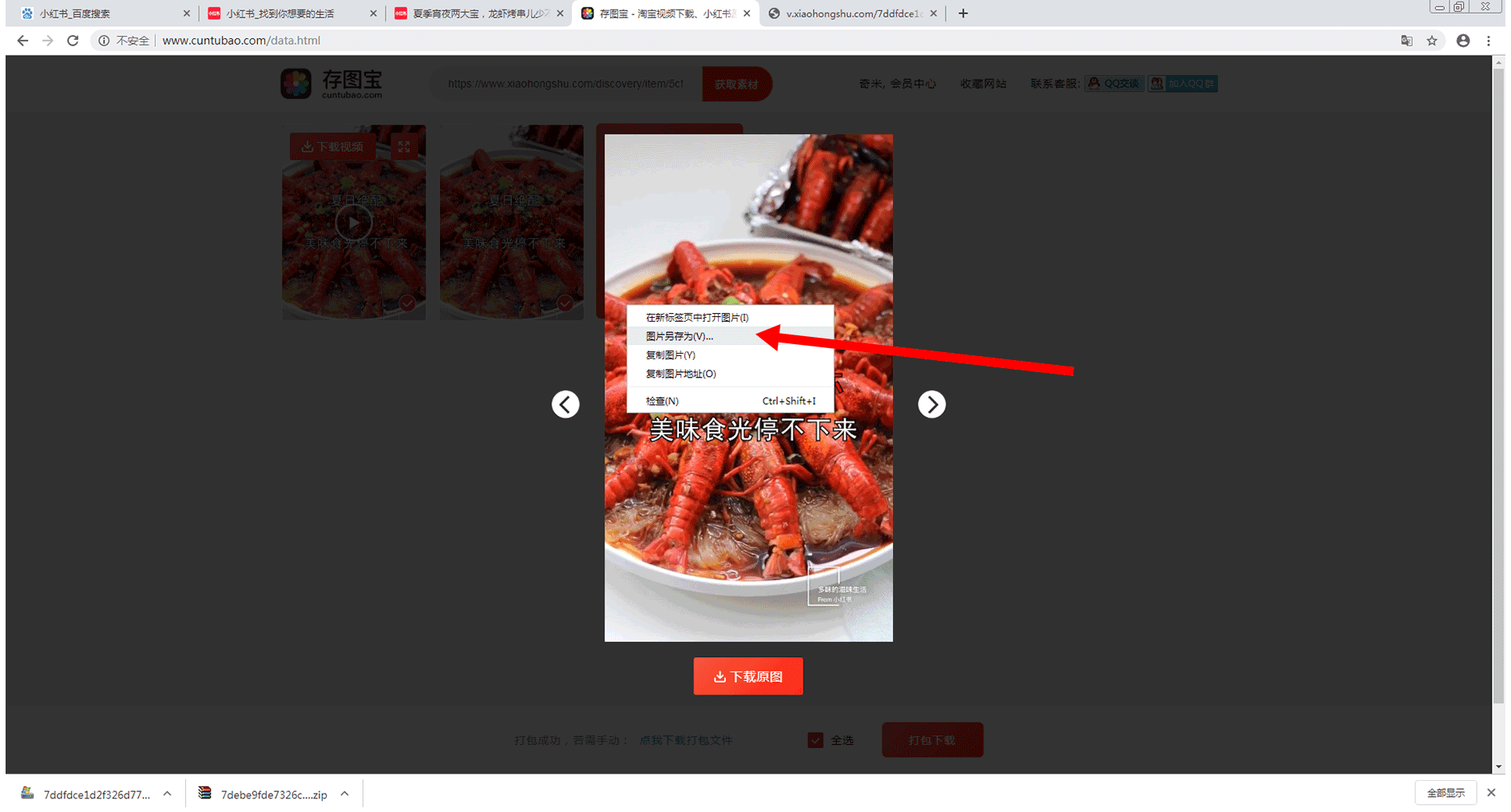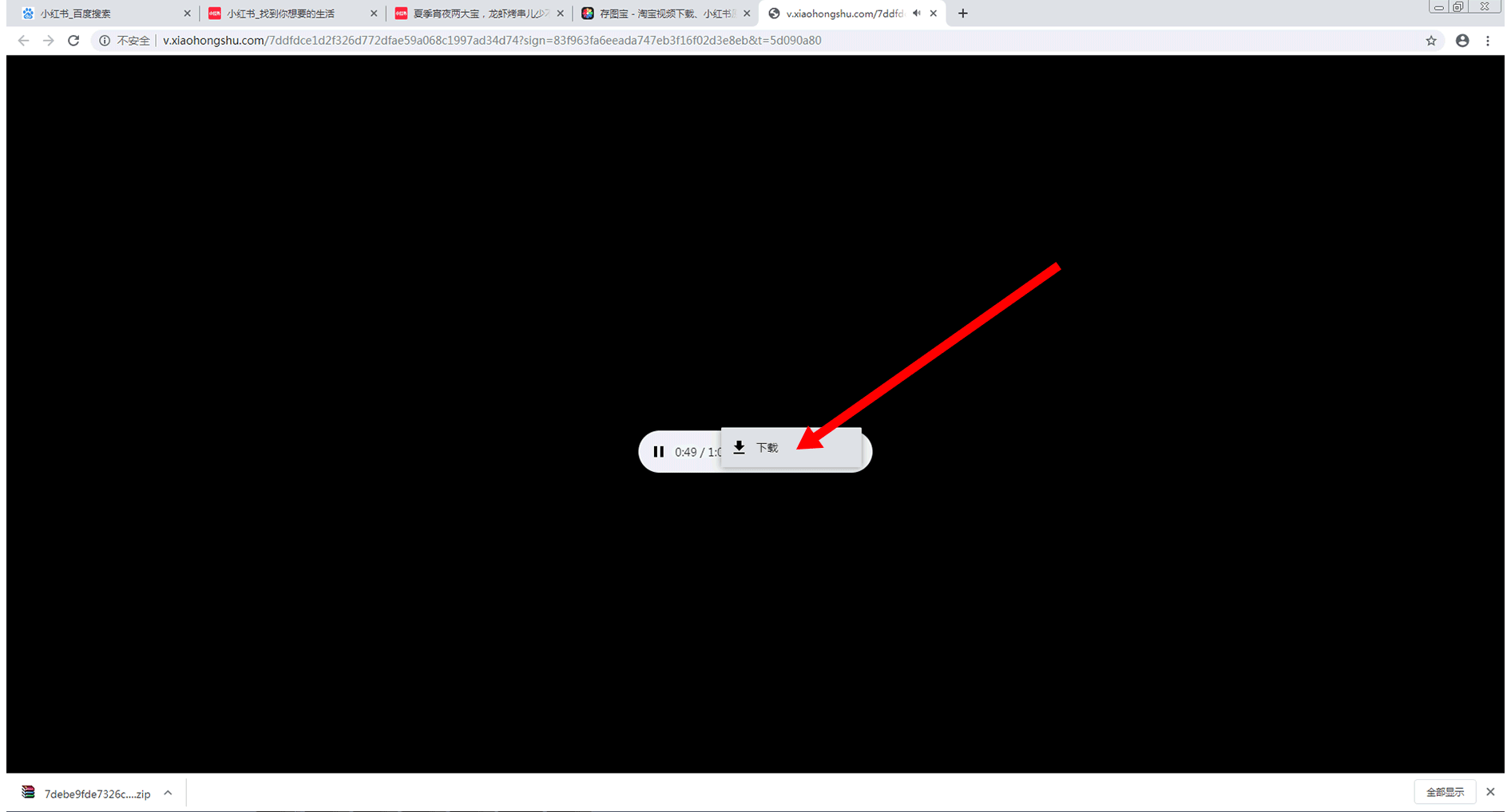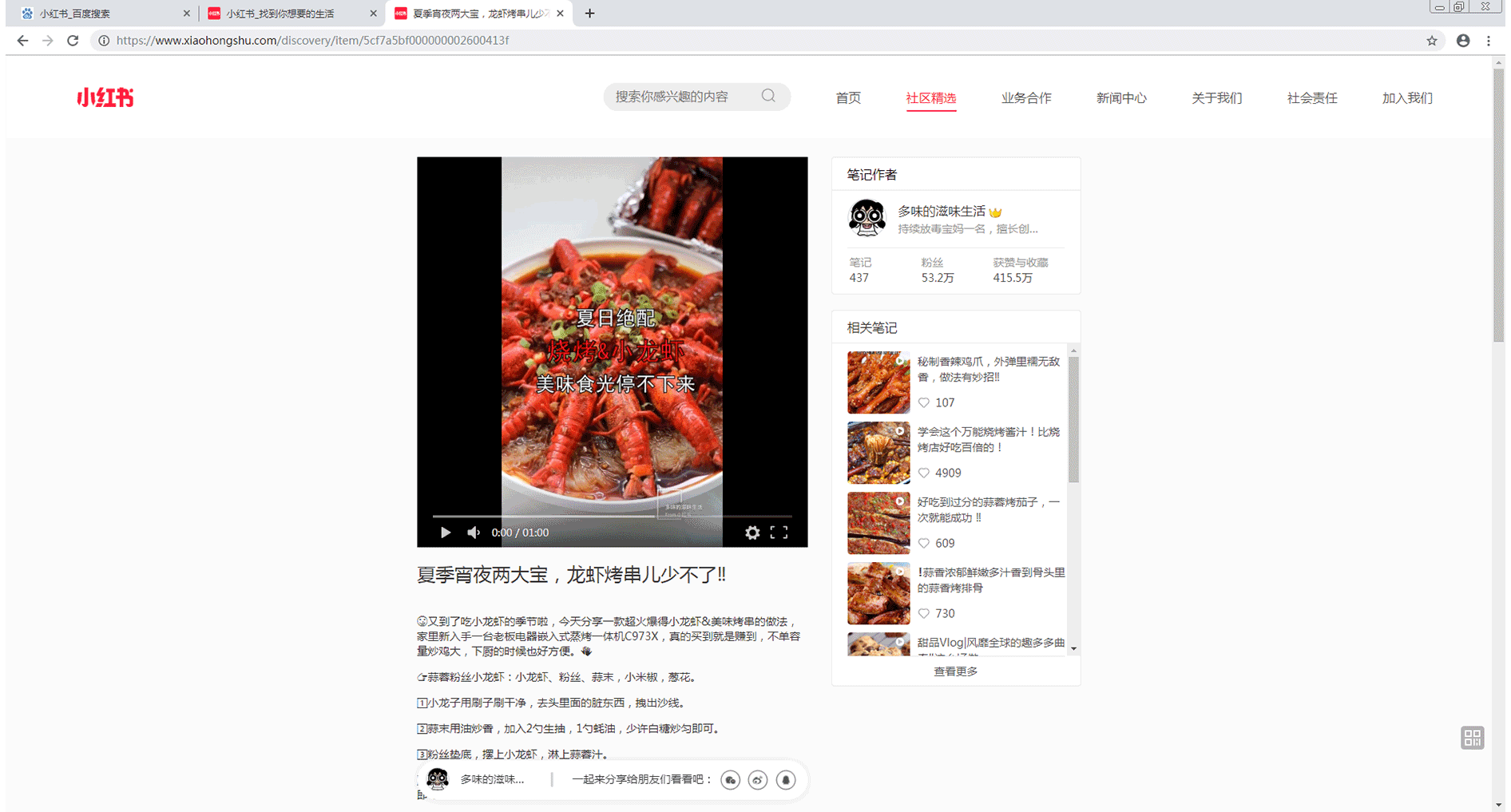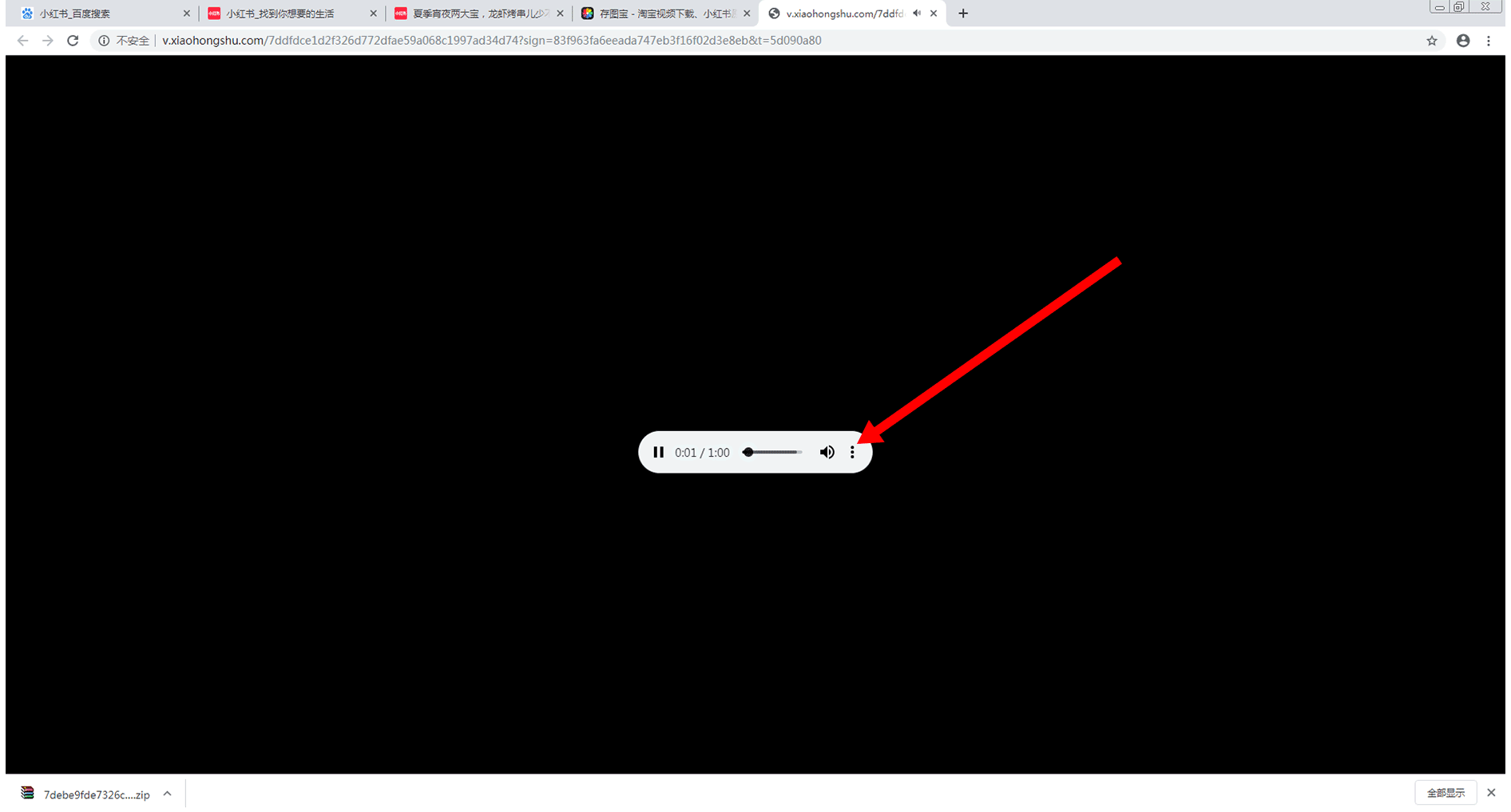 首先,通过浏览器进入到小红书,进入到你想要下载的小红书素材页面,如下图所示: