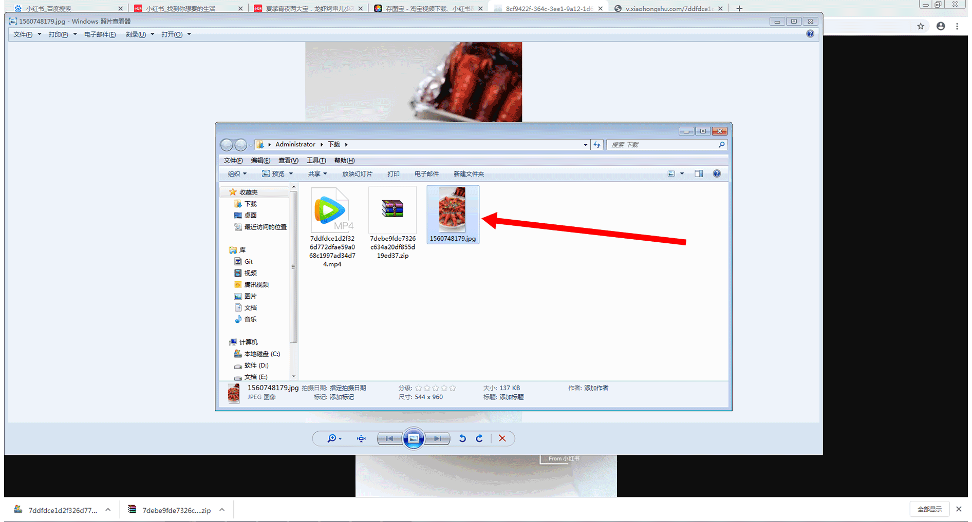 此时将弹出所下载图片文件所在位置的窗口,可以在该窗口中找到自己刚才下载的图片文件,如下图所示: