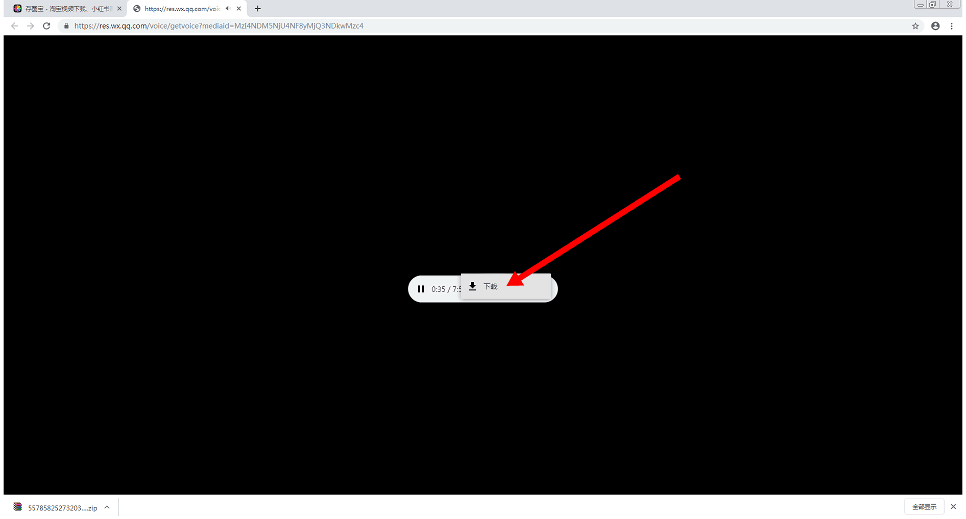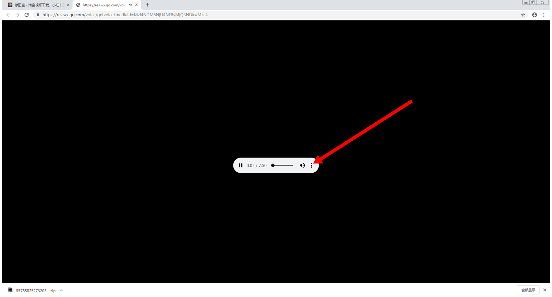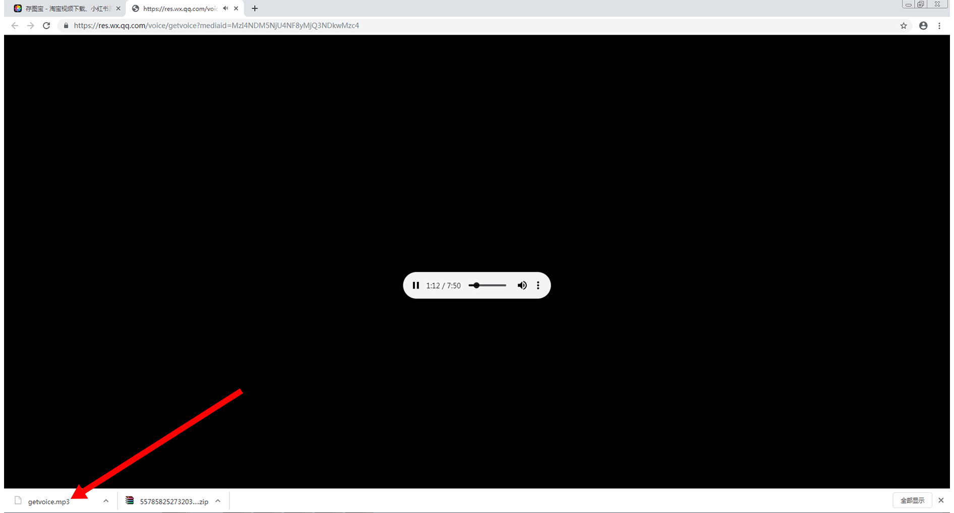 点击“下载”后,将会在该页面的左下角出现已下载的音频文件,如下图所示: