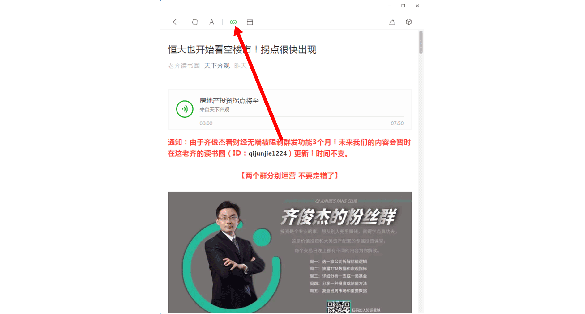 然后点击该页面上方的“链接”按钮,对链接进行复制,如下图所示: