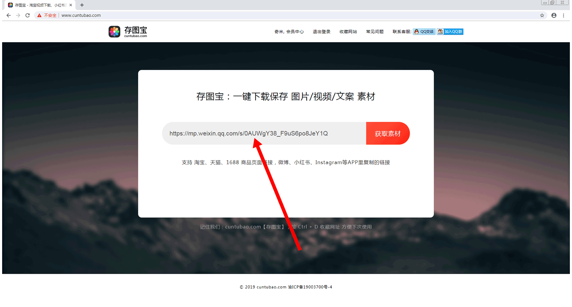 复制链接后,打开 存图宝 cuntubao.com,通过微信扫码登录后,进入到存图宝首页,如下图所示: