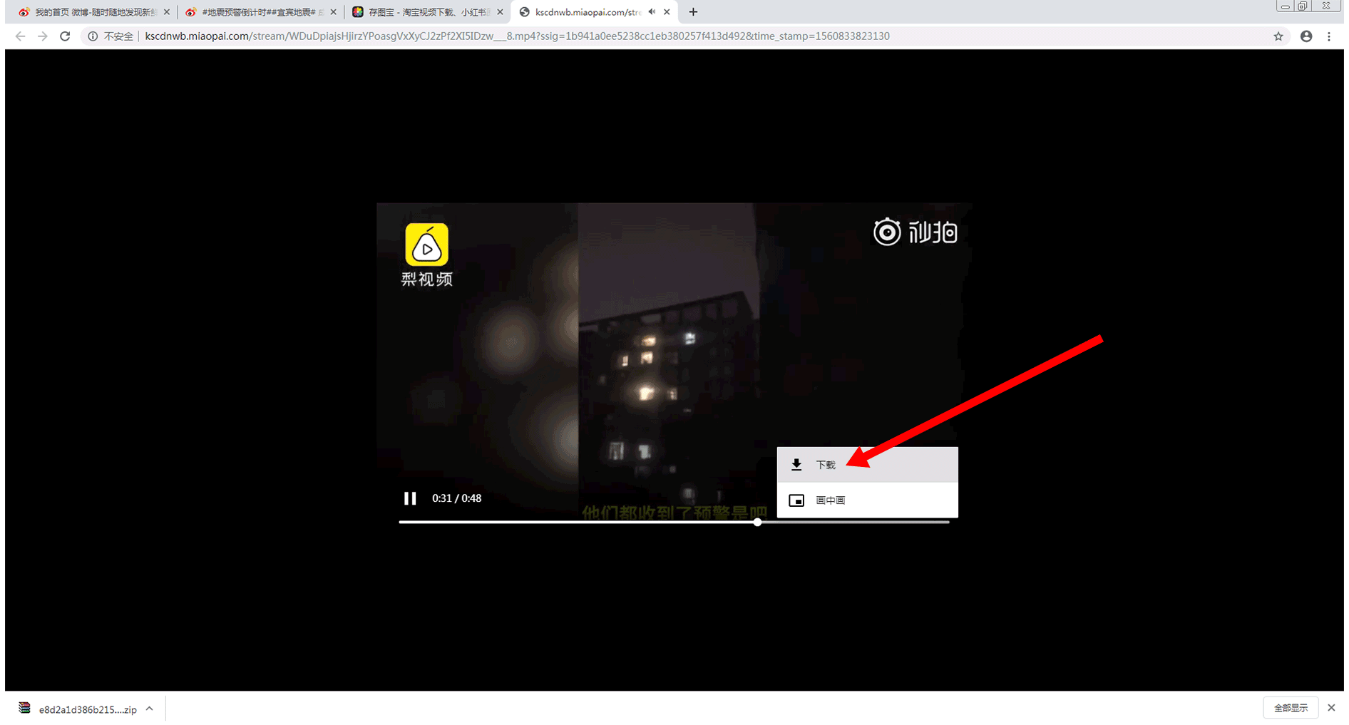 在弹出的菜单中,点击“下载”,即可对该视频进行下载,如下图所示: