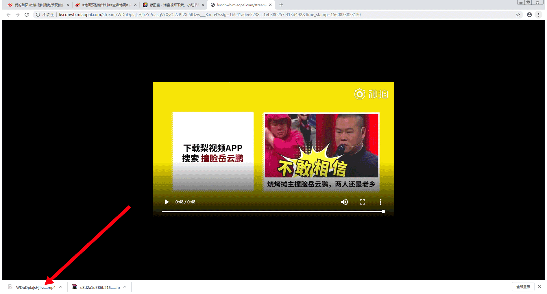 点击“下载”后,将会在该页面的左下角出现已下载的视频文件,如下图所示: