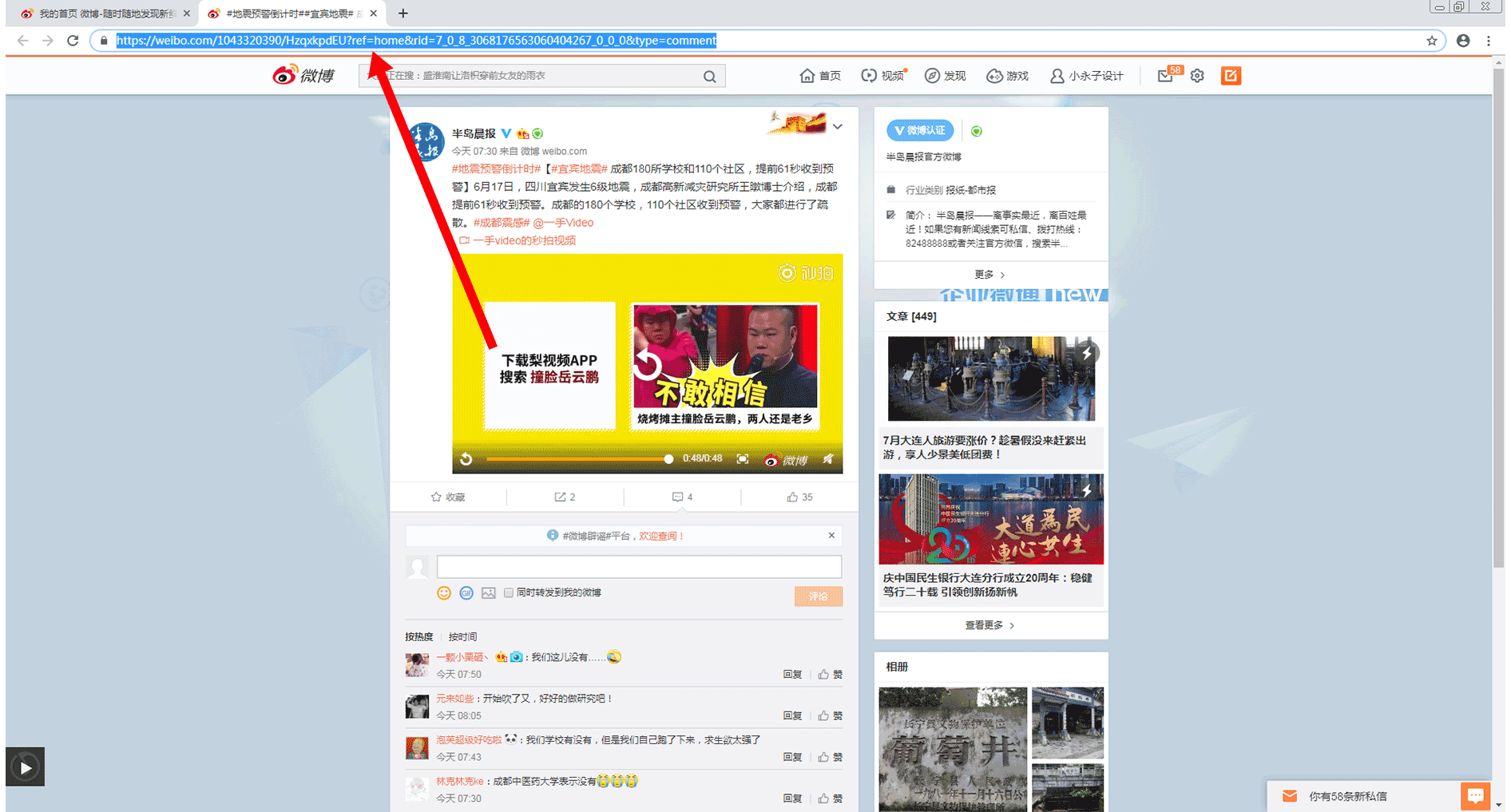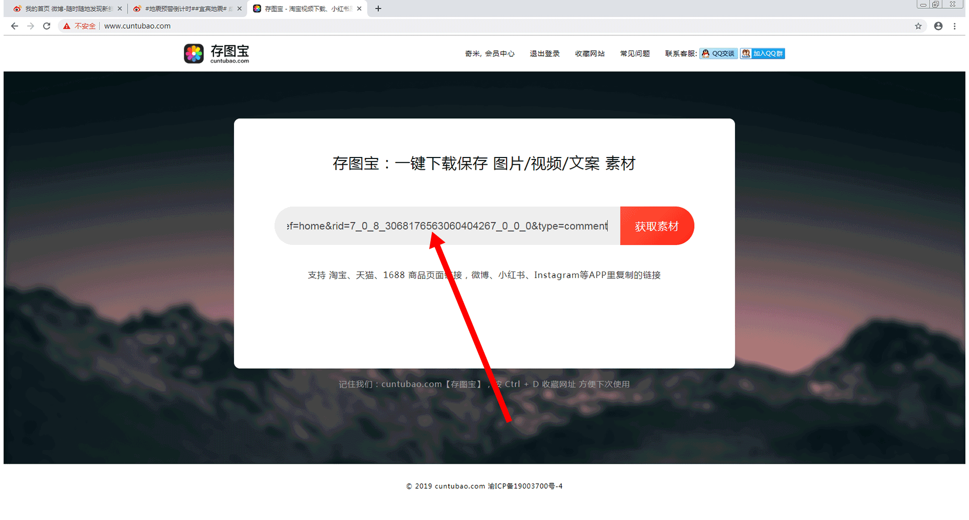 将复制的微博链接粘贴到输入框中,如下图所示: