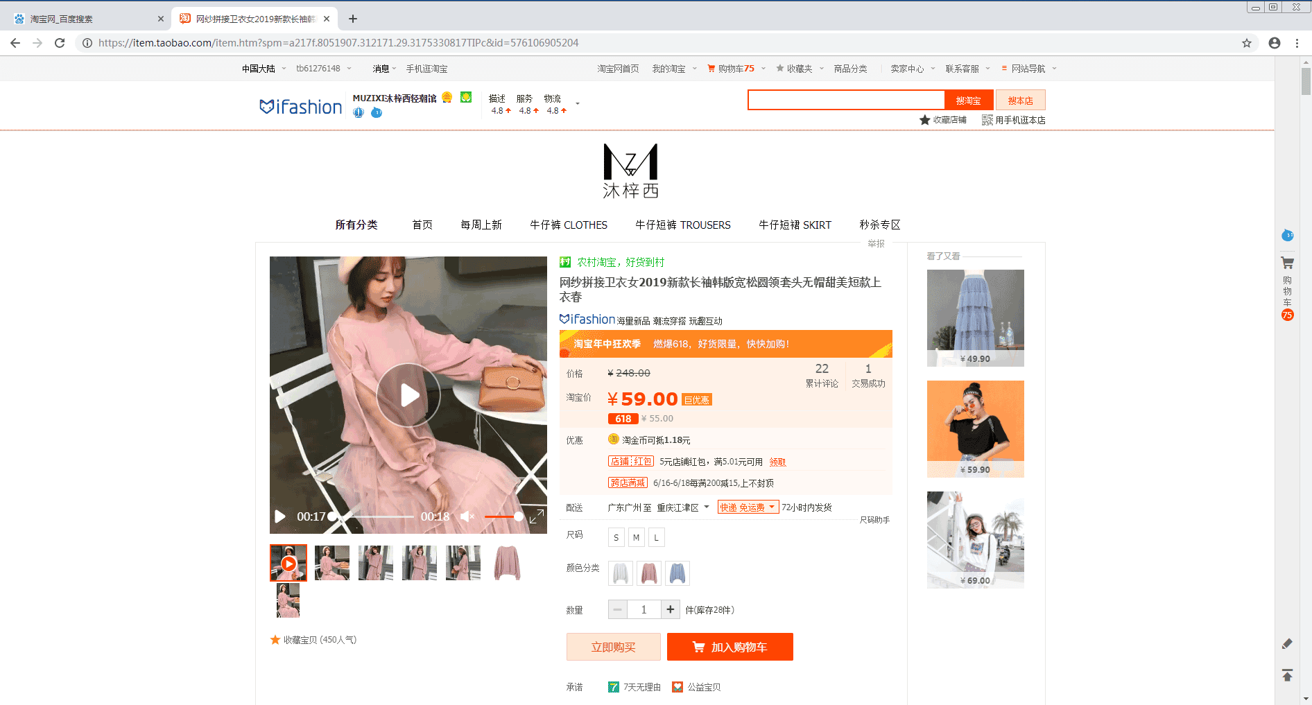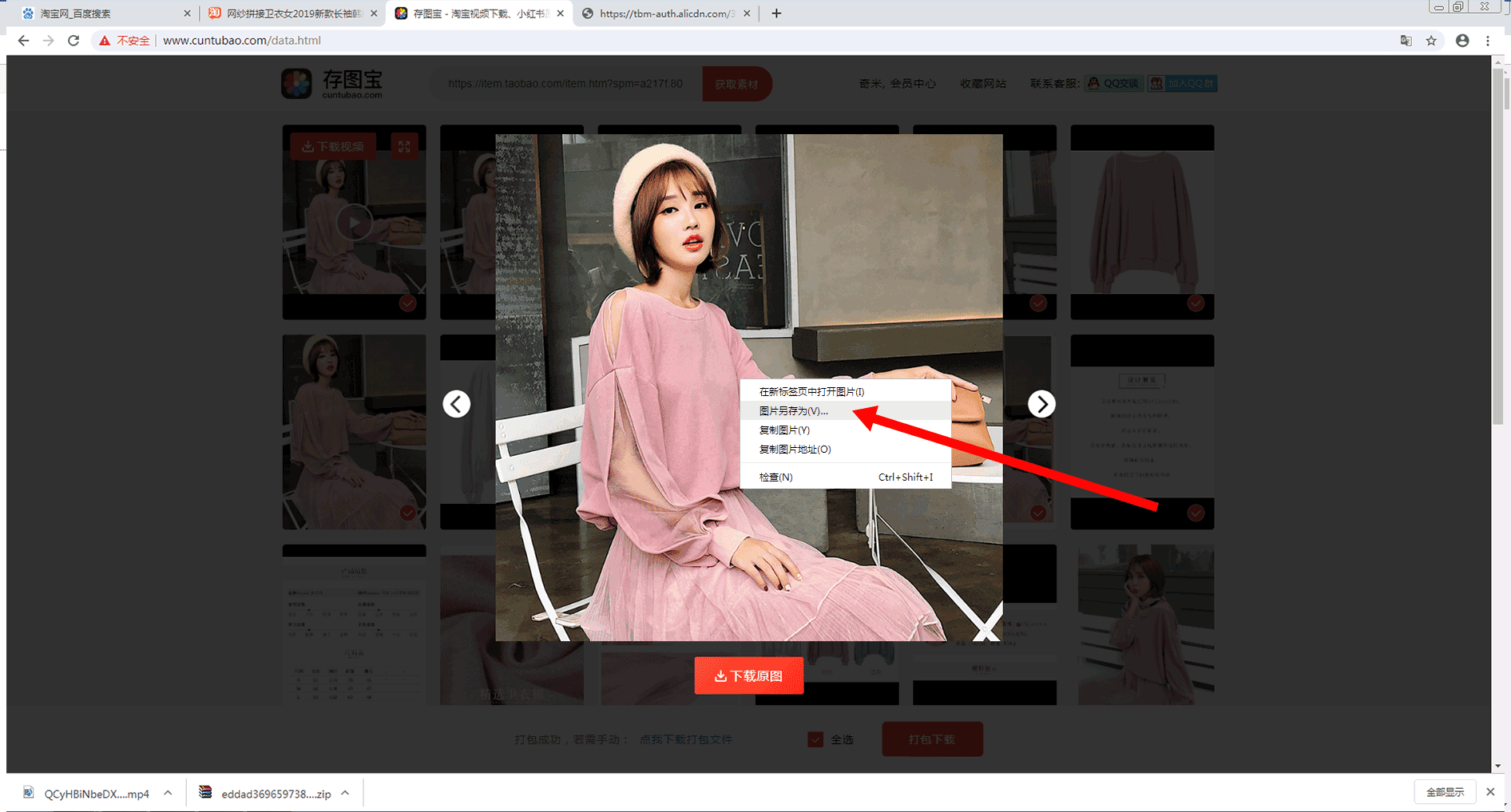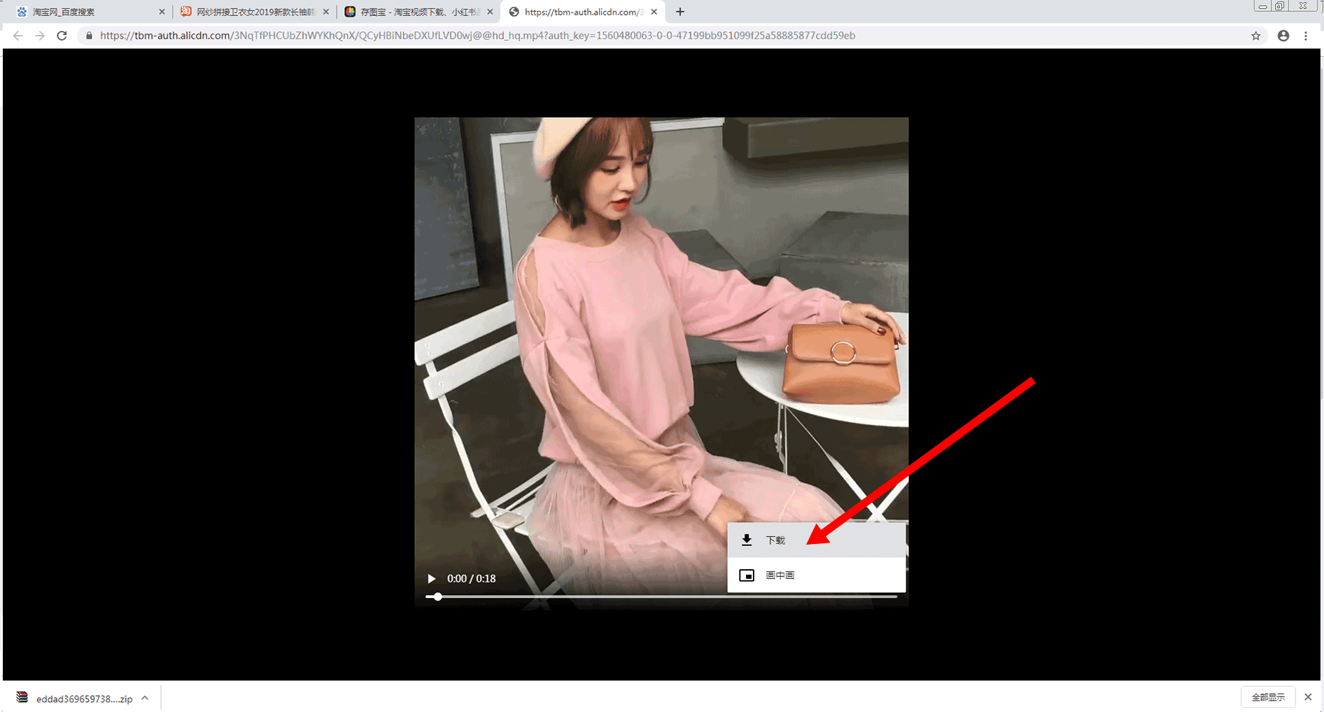 首先,通过浏览器进入到淘宝,进入到你想要下载的视频或图片页面,如下图所示: