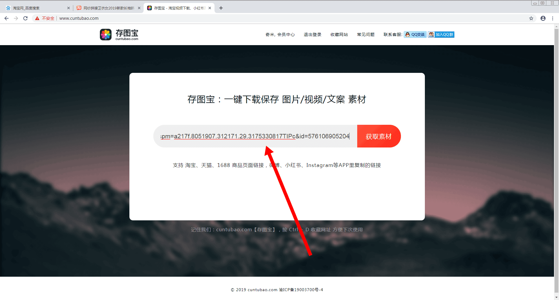 将复制的淘宝链接粘贴到输入框中,如下图所示: